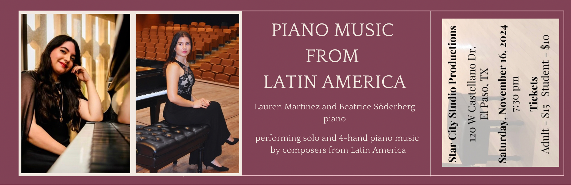 Pianists Lauren Martinez and Beatrice Söderberg perform solo and 4-hand piano music by composers from Latin America.